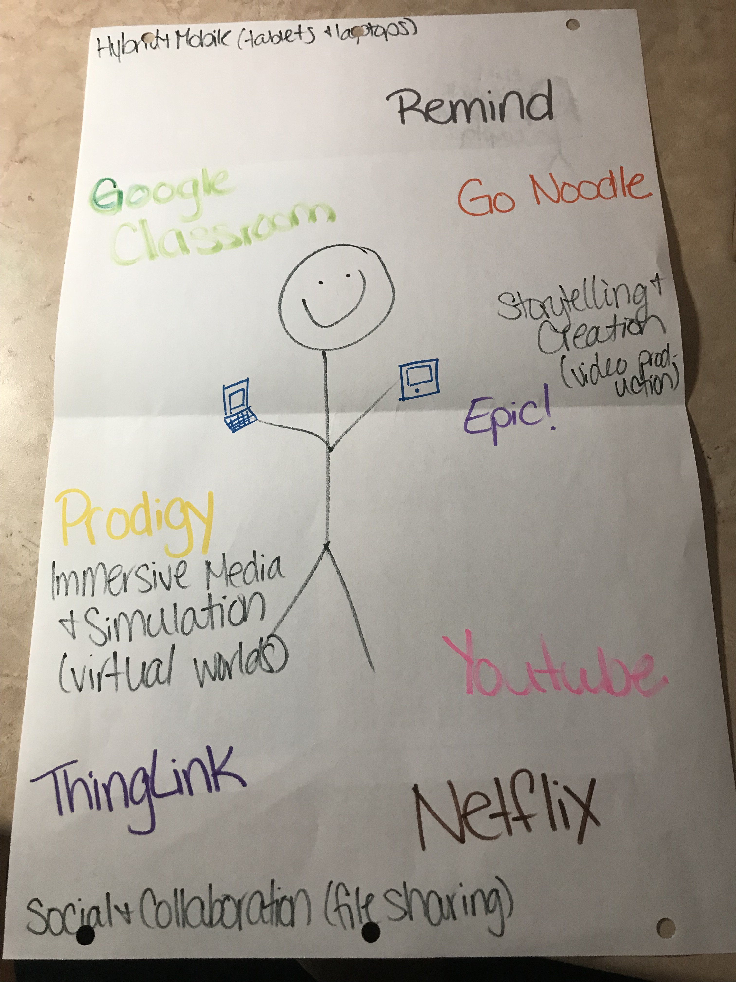 In Media and Digital Literacy class this week, we reflected on media and technologies that we experienced on our placements. Technology that we used on my placement included iPads and Chromebooks. Some of the media that were used include Go Noodle, YouTube, ThingLink, and Google Classroom.