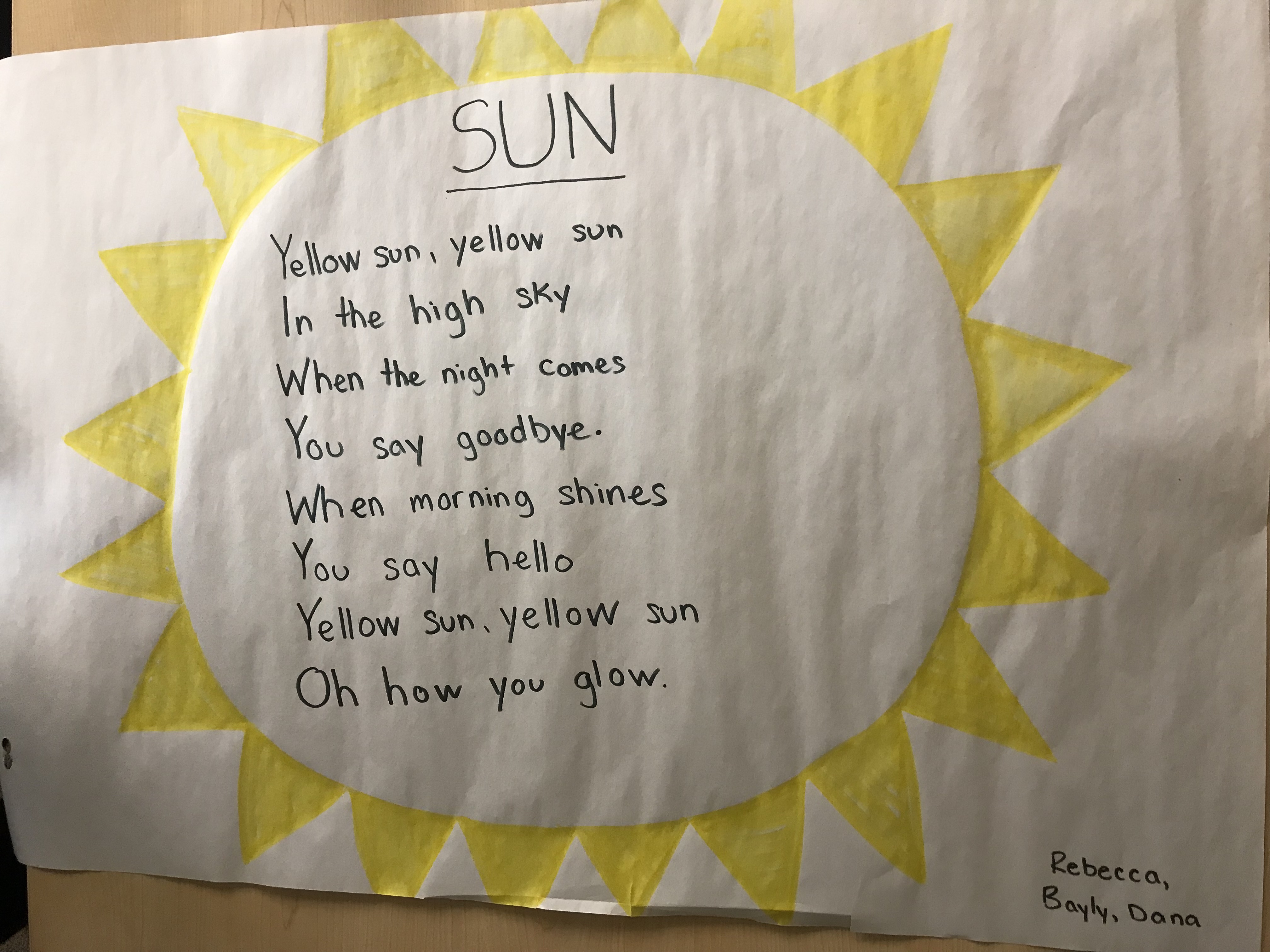 In Language Arts, we talked about shared writing and how to incorporate poetry into our classrooms. The mentor text we used was Clouds by Christina G. Rossetti. We read through her poem and thought of another topic weather related to create our own poem.
